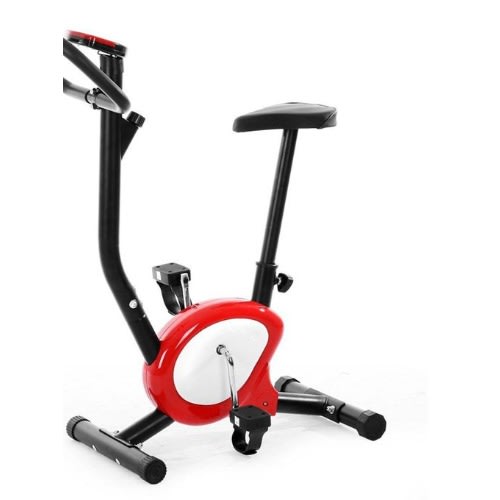 It may not move when you pedal, but it feels nothing like a stationary bike and you never have to leave your house to experience it. The exercise bike features a fully adjustable seat and handlebars for maximum comfort and performance while you exercise. An advanced 30-pound flywheel accurately simulates real bicycle action and the adjustable resistance lets you take on flat, uphill and downhill riding. Your indoor exercise spin bike also includes a heavy-duty crank and heavy-duty steel frame, for years of exercise and fun. This spin bike has an attractive grey metal frame, with a red front wheel and black accents on the seat and handlebars durable ...