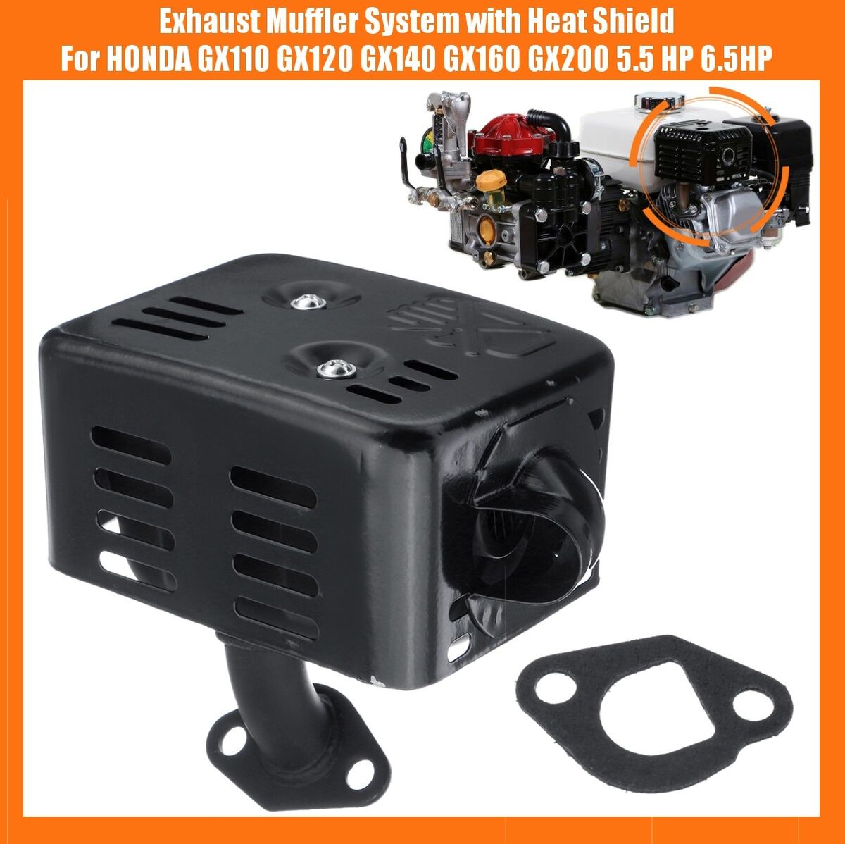 Exhaust Muffler System with Heat Shield For HONDA GX110 GX120 GX140 GX160 GX200 5.5 6.5HP