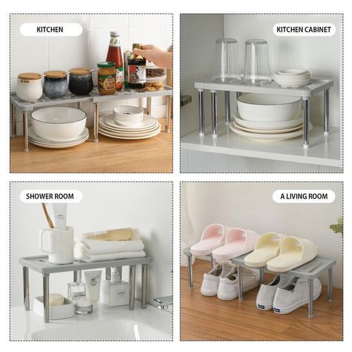 This storage shelf can organize plates, bowls, cups, fine china, and more, or tidy up cleaning products together under the sink or beautifully display coffee, tea, cups, and more on the worktop. Perfect for small space living as well as apartments, condos, campers, RV, cabins, and tiny homes.