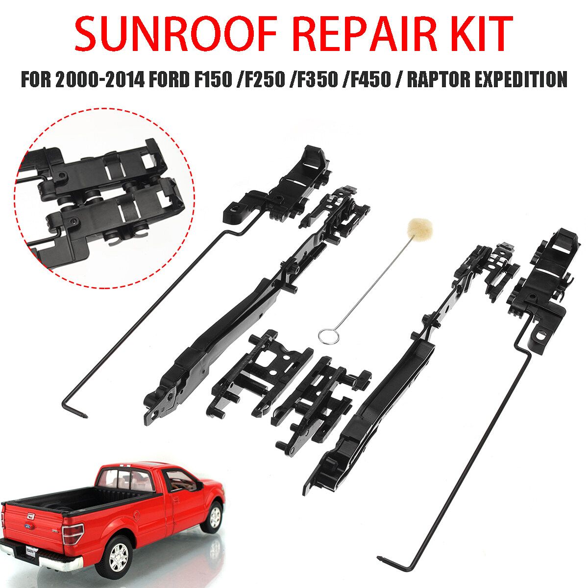- Our repair kit includes replacement sunroof lift , cam brackets and rear drain trough guide brackets.