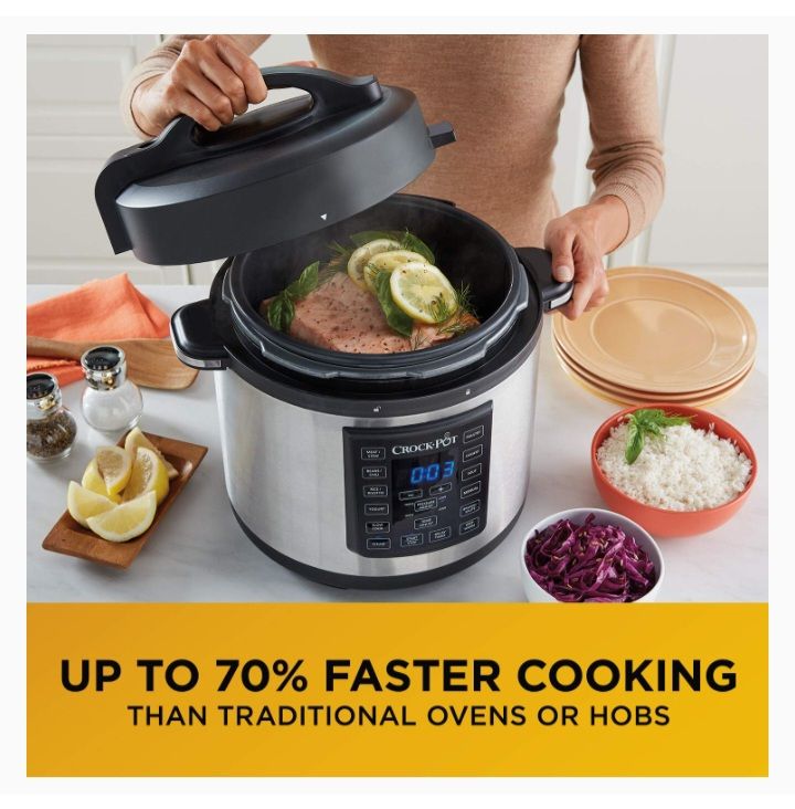 Spend more time with family & friends, and less time in the kitchen: 8 one-touch, pressure-cooked programmes cook up to 70% faster than the traditional oven or hob. Cook a whole chicken in 30 minutes, then steam your veg in the Crock-Pot Express while your roast is resting: enjoy dinner in under an hour, and you've only used one pot.