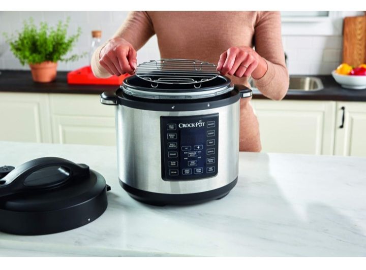 When pressure cooking, the super-safe lid can only be removed after all the pressure has been released. A locking lid, with sturdy carry handle, means this Crock-Pot Express can easily be transported, for meals on the move.
