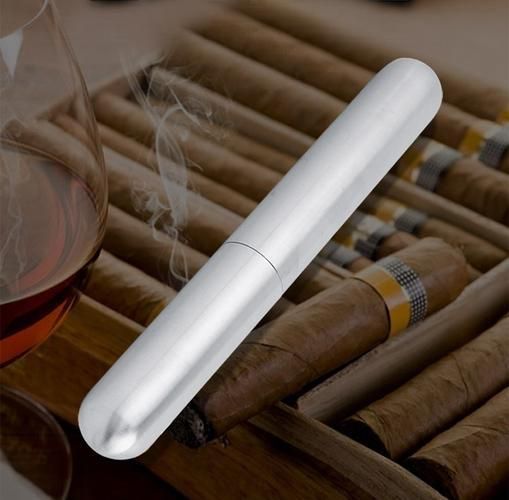 Exquisite Thickened Stainless Steel Cigar Tube Box Cylindrical Single Portable Business Metal Smoking Set Gift Boutique
