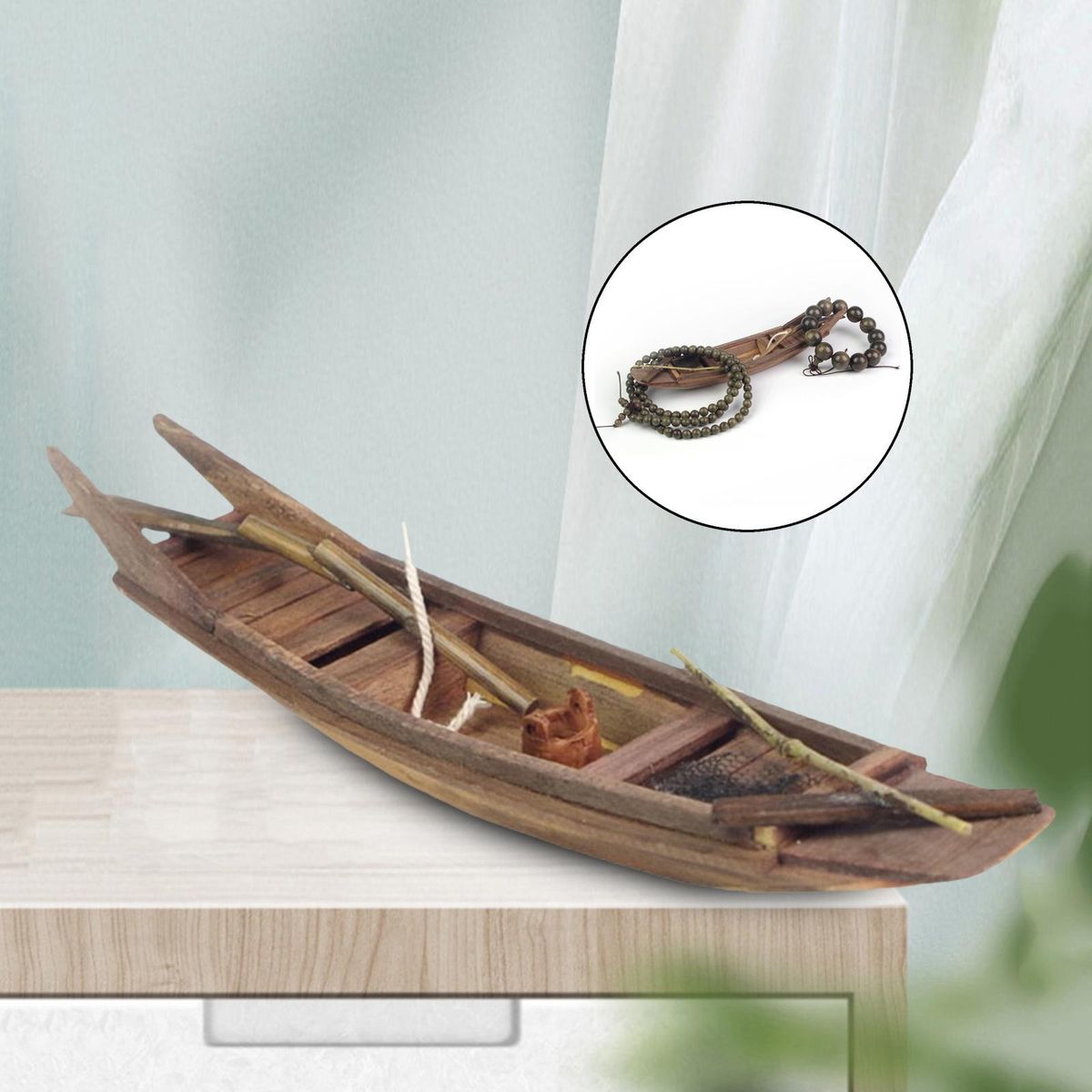 Wooden Sailer Boat Decor: Hand crafted miniature canoe boat model with exquisite workmanship, full of personalization, lovely and realistic.