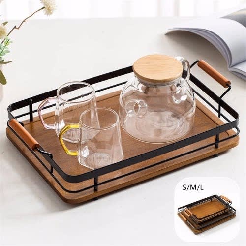 Buy Exquisite Wooden Tray With Iron Designed Handle - 3pcs in Nigeria