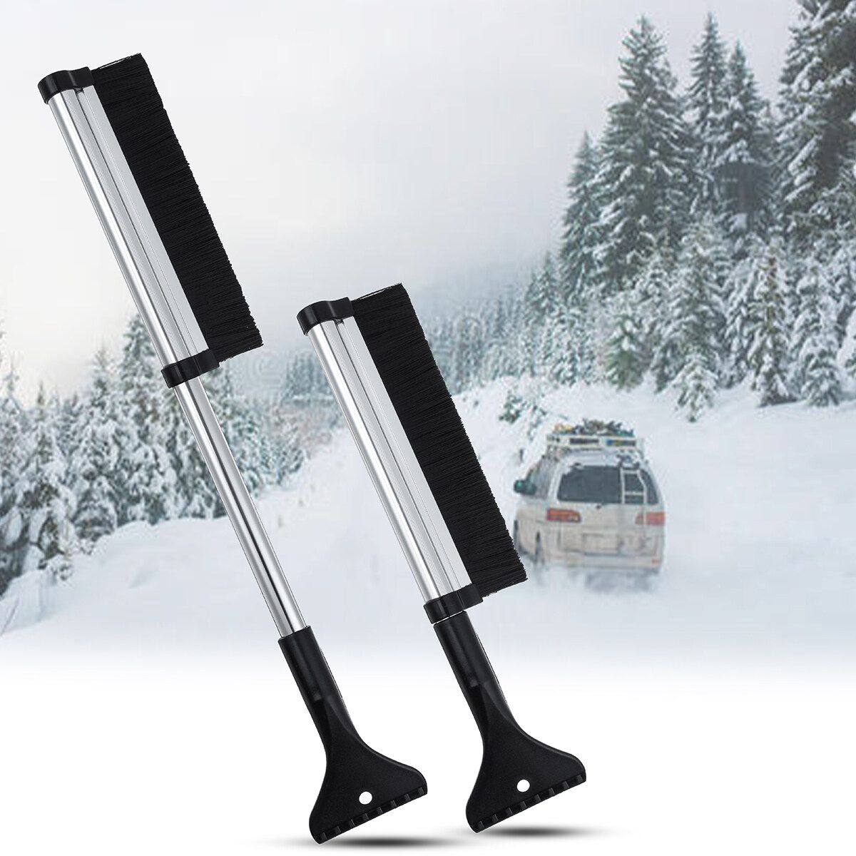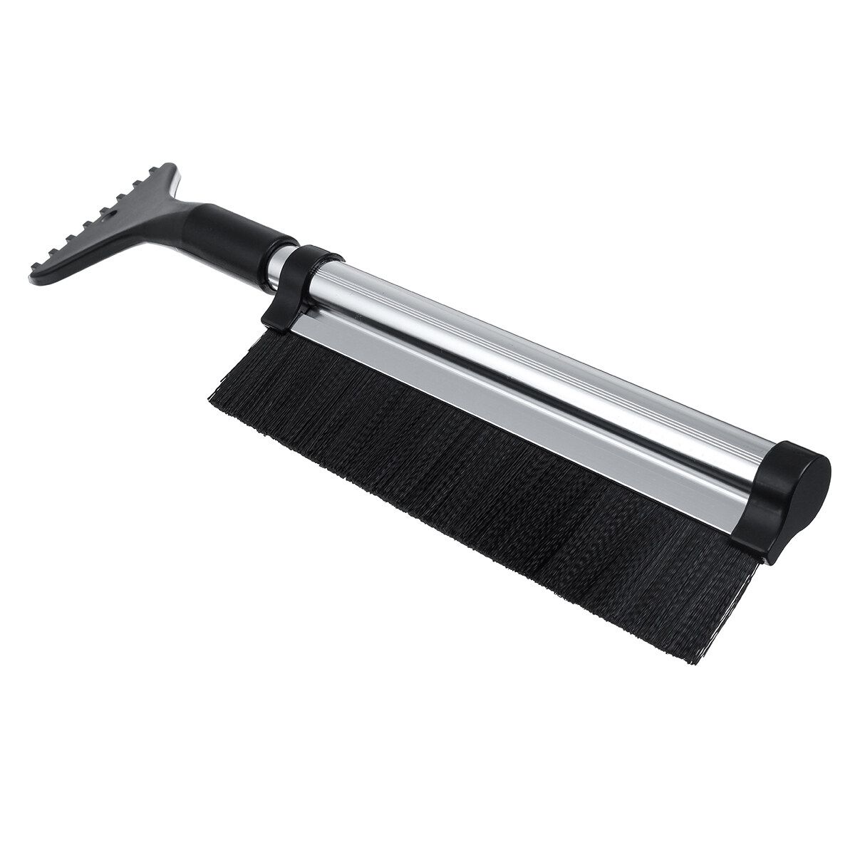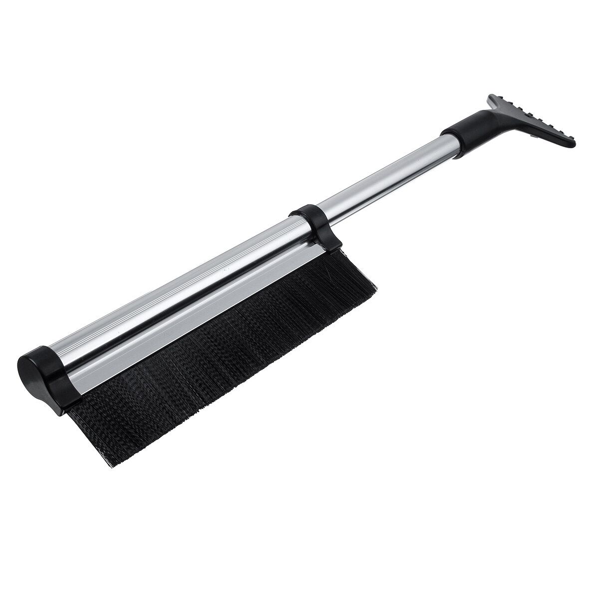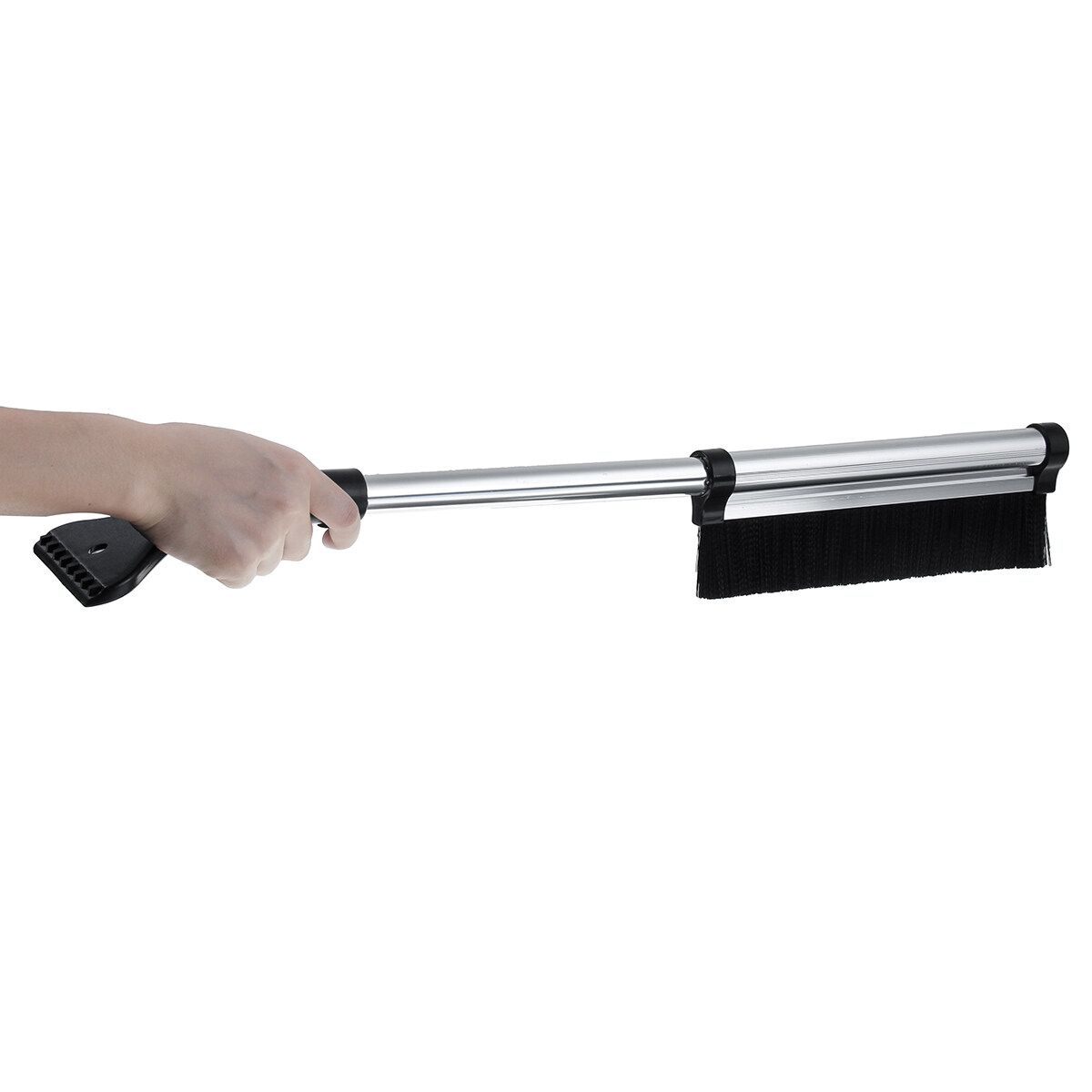 ● Extendable: The Telescoping ice scraper and snow brush can extend from 16.5" to 23.6" that easily reaches across most cars and SUVs windshield. After using the ice scraper, you can retract the ice scraper to 16.5" to fit easily under or behind your seat. The handle lengthens and shortens and stays in place with a twist of the wrist. The fact that it lengthens and shortens makes it easy to handle.