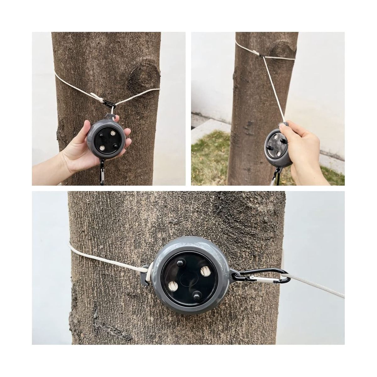The portable trunk has a built-in swivel disk After use the cord can be easily retracted by twisting avoiding the of ordinary laundry lines The fixed handle design can freely adjust the rope to the length Easy to store This outdoor clothesline is easy to store and rotate small and exquisite