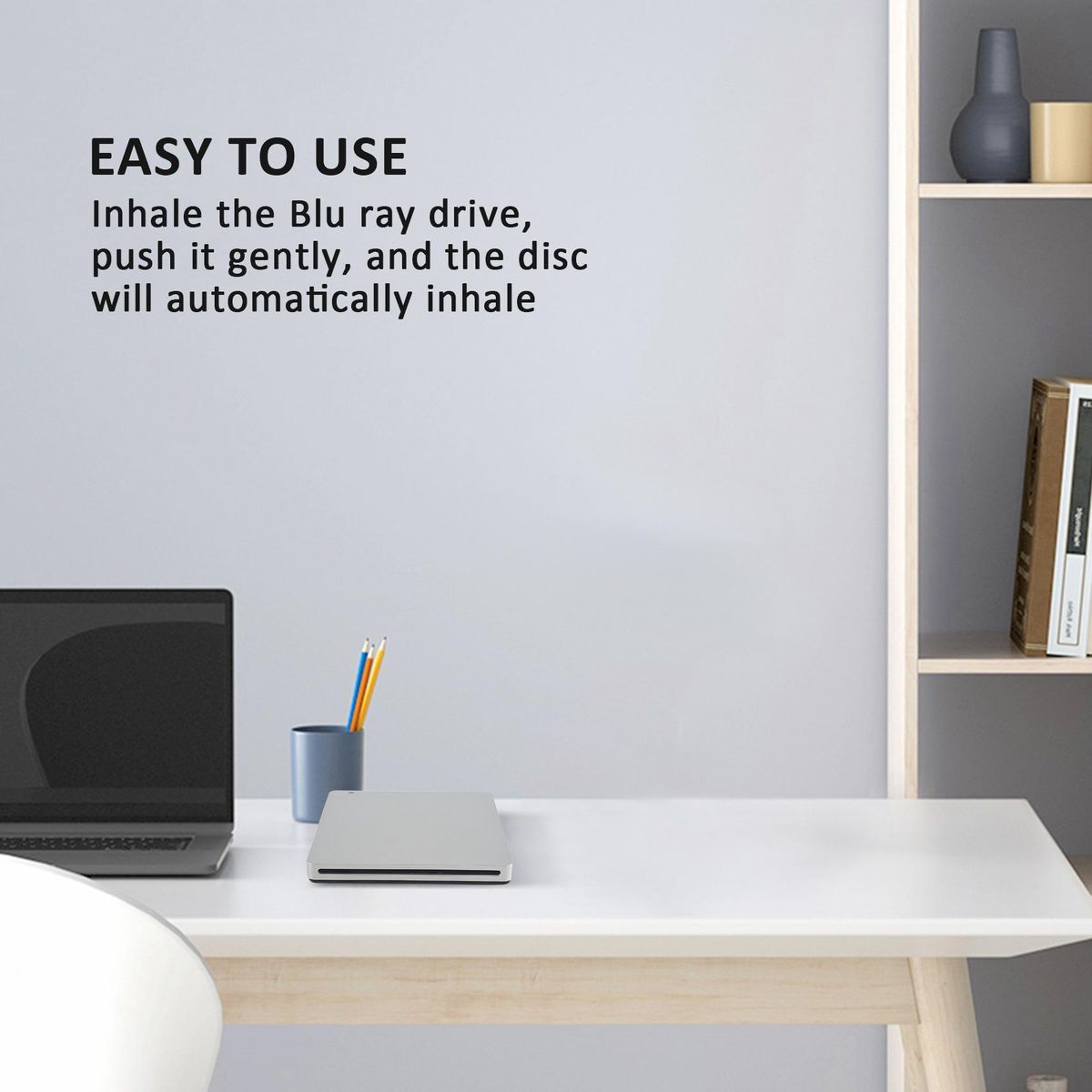 Detailed Information About The Product:[Easy to Use]The external blu ray drive can read CD,DVD and blu ray discs,just burn CD and DVD.Powered by USB 3.0 or TYPE-C, no separate power supply is required.The drive has a Press on help eject the disc,no need to install any drivers.It's also very quiet to use,inhaled Blu-ray drive, gently push, disc automatically inhaled.Plug the blu ray DVD drive into your computer USB3.0 or Type-C interface. Then you can enjoy the wonderful time.