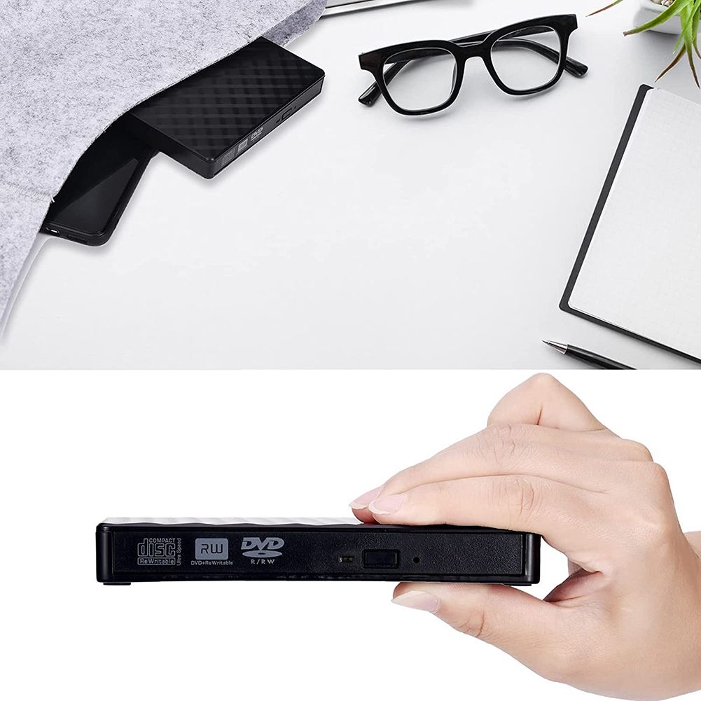 [USB 3.0 External DVD Drive] - Working with USB 3.0 high speed interface, brings you faster data transfer speed (up to a maximum of 5 Gbps) and stable performance with strong fault tolerance. Backwards compatible with USB2.0 and USB1.0. [Fast installation, plug and play] - It is done via the USB port, the slot is charged; No DVD driver program or additional power supply required. You can easily use our CD / DVD driver to watch movies, burn files, install software, or create a backup CD that covers all of your burning and playback needs. [Wide Compatibility] - CD-ROM / DVD-RM Reader and Recorder adds a Type-C adapter that can support various devices. Compatible with for Windows 2000/2003 / XP / 7/8/10, Vista and all versions of OS systems, Book Air andBook Pro. In addition, this burner and burner drive can read and record in various formats, for B. CD-R, CD-RW, CD-ROM, DVD-R, DVD-RW, DVD-RAM, DVD-RW. [Fashionable and Portable Design] - And the wavy appearance makes your external optical drive look more stylish and exquisite. The data cable is hidden in the USB DVD player buner for laptop. It has a sleek, lightweight, shock-resistant design and is stylish enough. You can put this external CD drive / DVD burner / player in your travel bag or on your desk. [Smart Tech] Designed with the eject on in mind, so you never have to worry about your disc to get stuck in this external CD / DVD drive. The copper mesh technology of this external component means you can be aured of stable data transmiion. Colour:black Material:plastic Package Contents: 1 * External CD Drive Only the above package content, other products are not included. Note: Light shooting and different displays may cause the color of the item in the picture a little different from the real thing. The measurement allowed error is +/- 1-3cm.