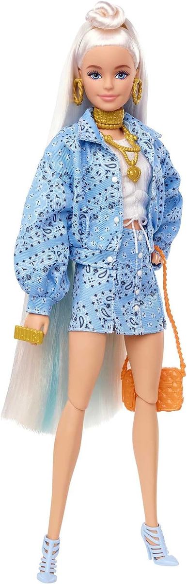 Barbie Extra Doll & Accessories with Platinum Blonde Hair, Blue Paisley-Print Jacket & Pet Chihuahua