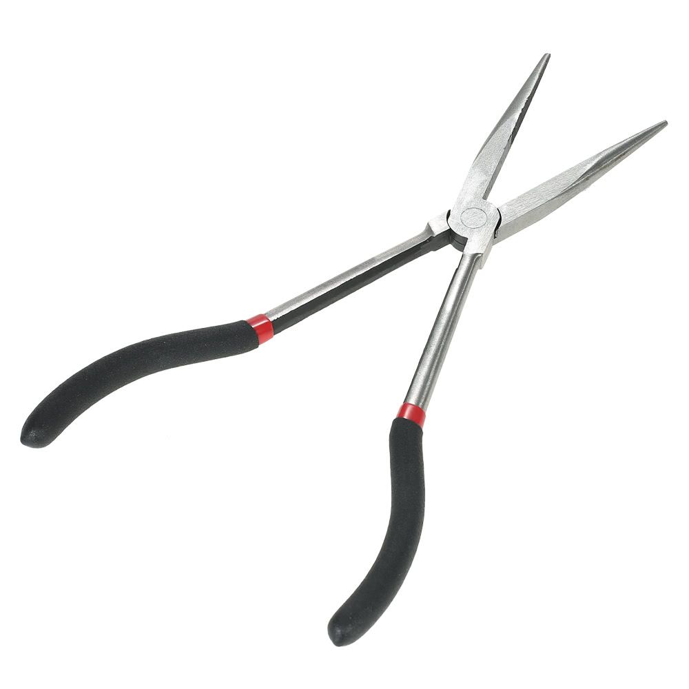 Long flat nose pliers with double dipped plastic grip for those extra hard to reach and awkward areas.