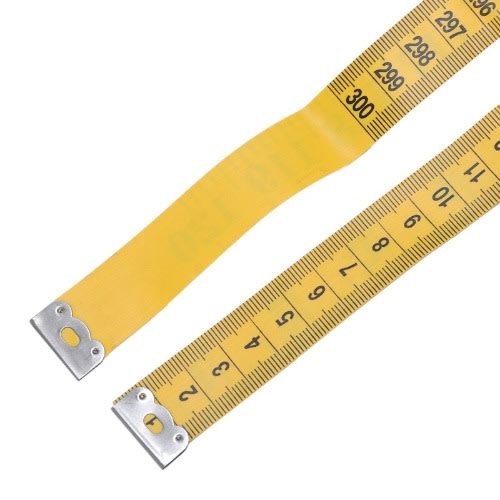 A tape measure flexible and portableUseful for measuring cloths or articles that are not straight lines or edgesA need for sewing, crafts or the construction of a scientific projectLarge, easy to read marksMeasuring up to 120 inchesHaving also scale centimetre on the reverse side that is up to 300cmWidth: approx. 3/4 inch / 1.9 cmAccuracy: 1 mm / 1/8 inchColor: Yellow and blackMaterial: plastic flexibleThe package includes: 1 x tape measureNote:Light shooting and different displays may cause the color of the item in the picture a little different from the real thing. The measurement allowed error is +/- 1-3 cm