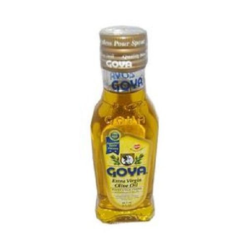 Goya Extra Virgin Olive Oil 88. 7ml Goya Extra Virgin Olive Oil is made from a special selection of the highest quality olives cultivated under the Mediterranean sun, with all their original taste and aroma. It is an Ideal substitute for butter and ghee and is to be used in raw cooking, ideal for salads and dressings. Goya Extra Virgin Olive Oil Produced by cold pressing of freshly picked olives: conserves the flavor, aroma & vitamins of the fruit, contains vitamin A which is good for the eyes. It has a Beneficial Balance Of Fatty Acid making it widely used in homes and catering and hospitality establishments for the preparation/cooking of delight some meals and salads. Goya Extra Virgin Olive Oil Can be used to prepare Bread Toast, Salads, Grilled Foods and Steamed Vegetables. A healthy option for your family! Contains No Animal Fat. Suitable for vegetarians.