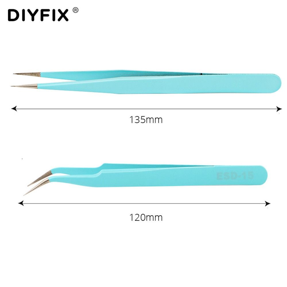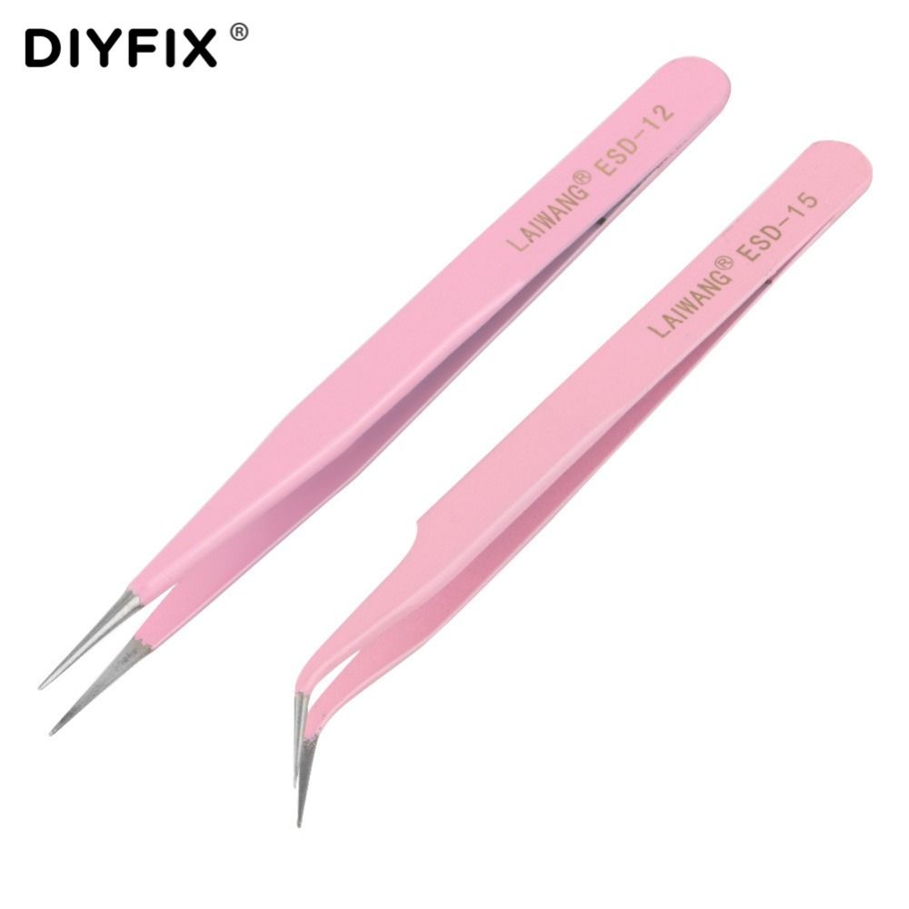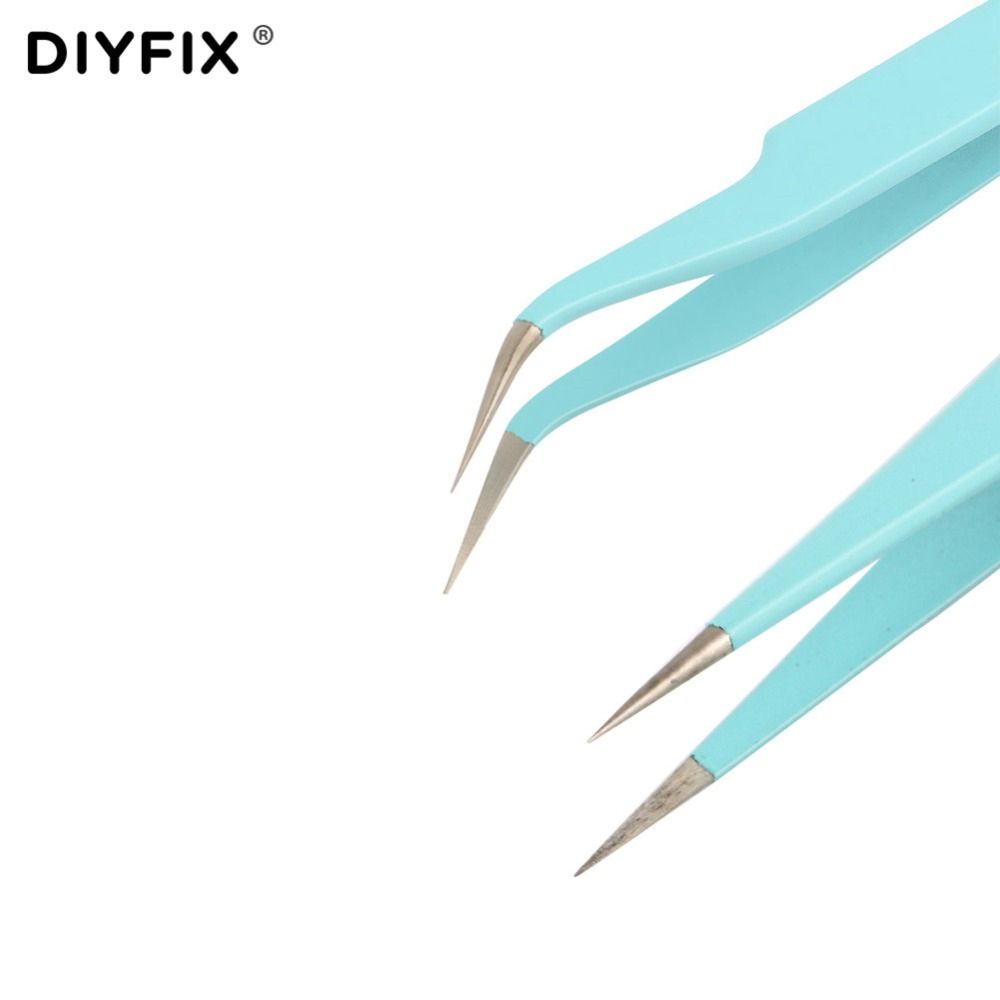 1X DIYFIX Eyelash Extension Tweezers Precision Straight Curved Forceps Pliers for Nail Art Rhinestones Gem Decor Picking Hand Tools
