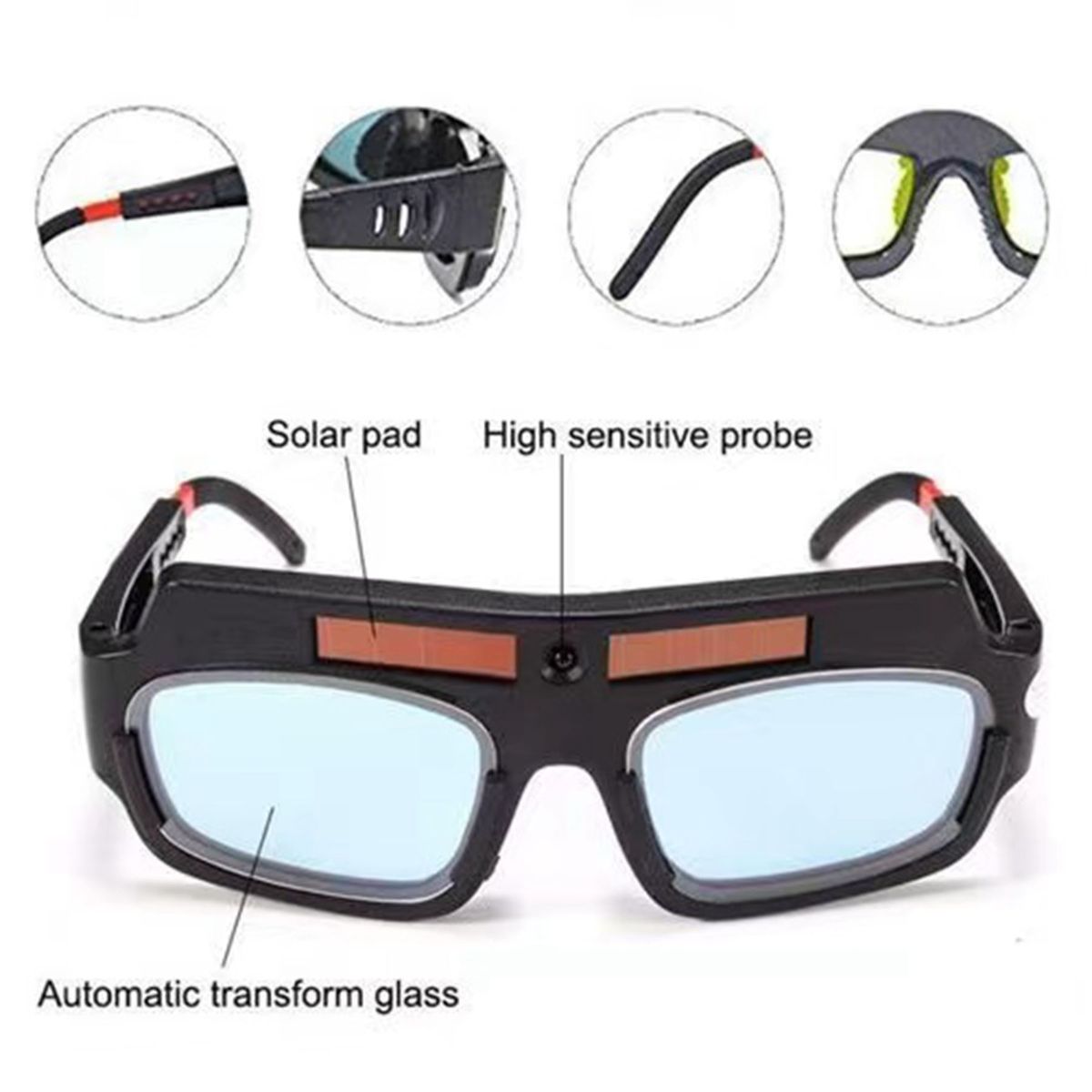 [Solar Welding Gogg-les] Built-in solar powered cells, no batteries required. Convenient shied Gogg-les widely can be applied to gas welding, steel welding, cutting, and so on.