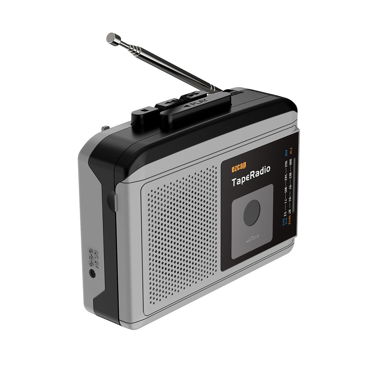Features:Press PLAY tape button to play tape and you can hear music from speaker, or you can also use an wired earphone to listen to music.