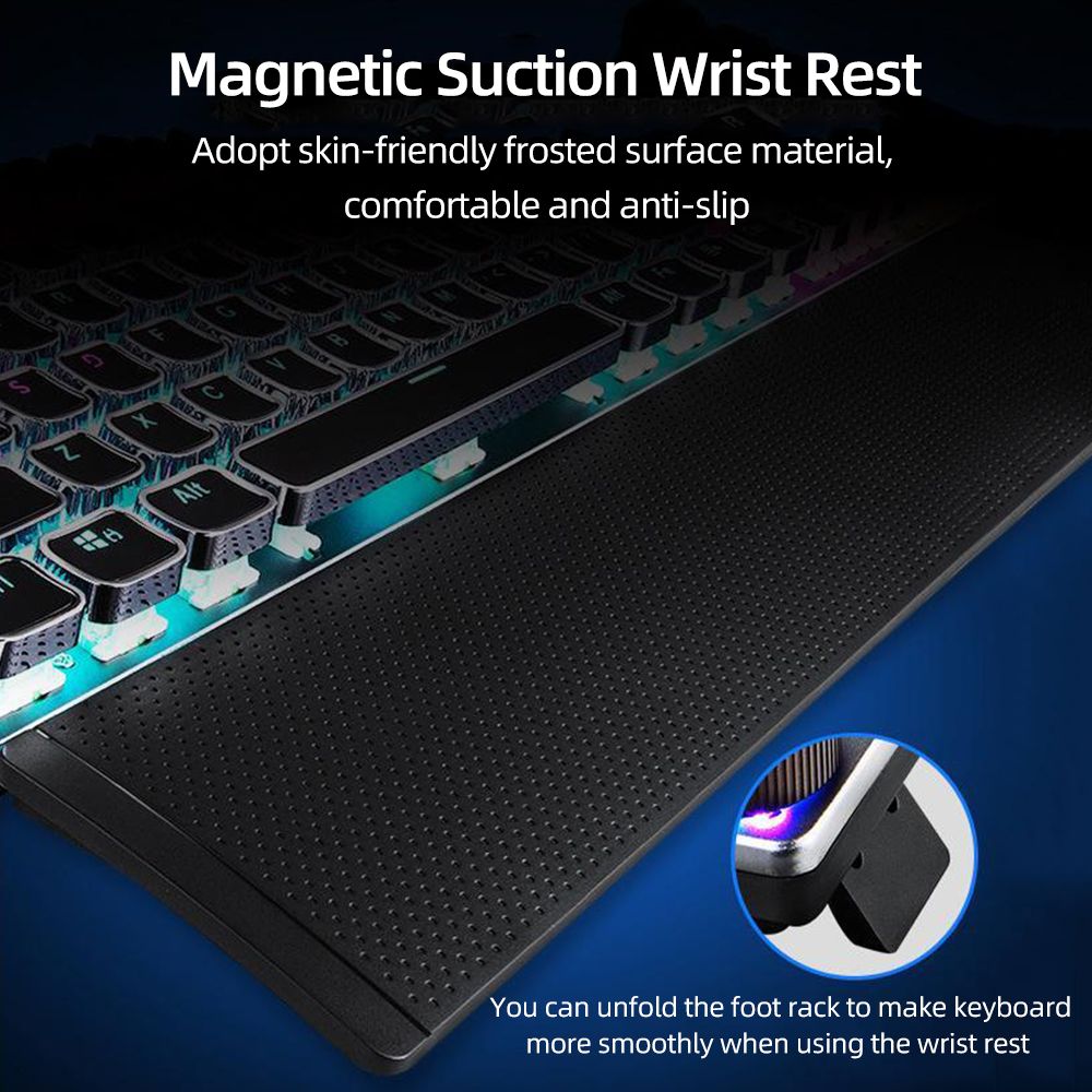 Equipped with magnetic suction wrist rest, which adopts skin-friendly frosted surface material, comfortable and anti-slip.