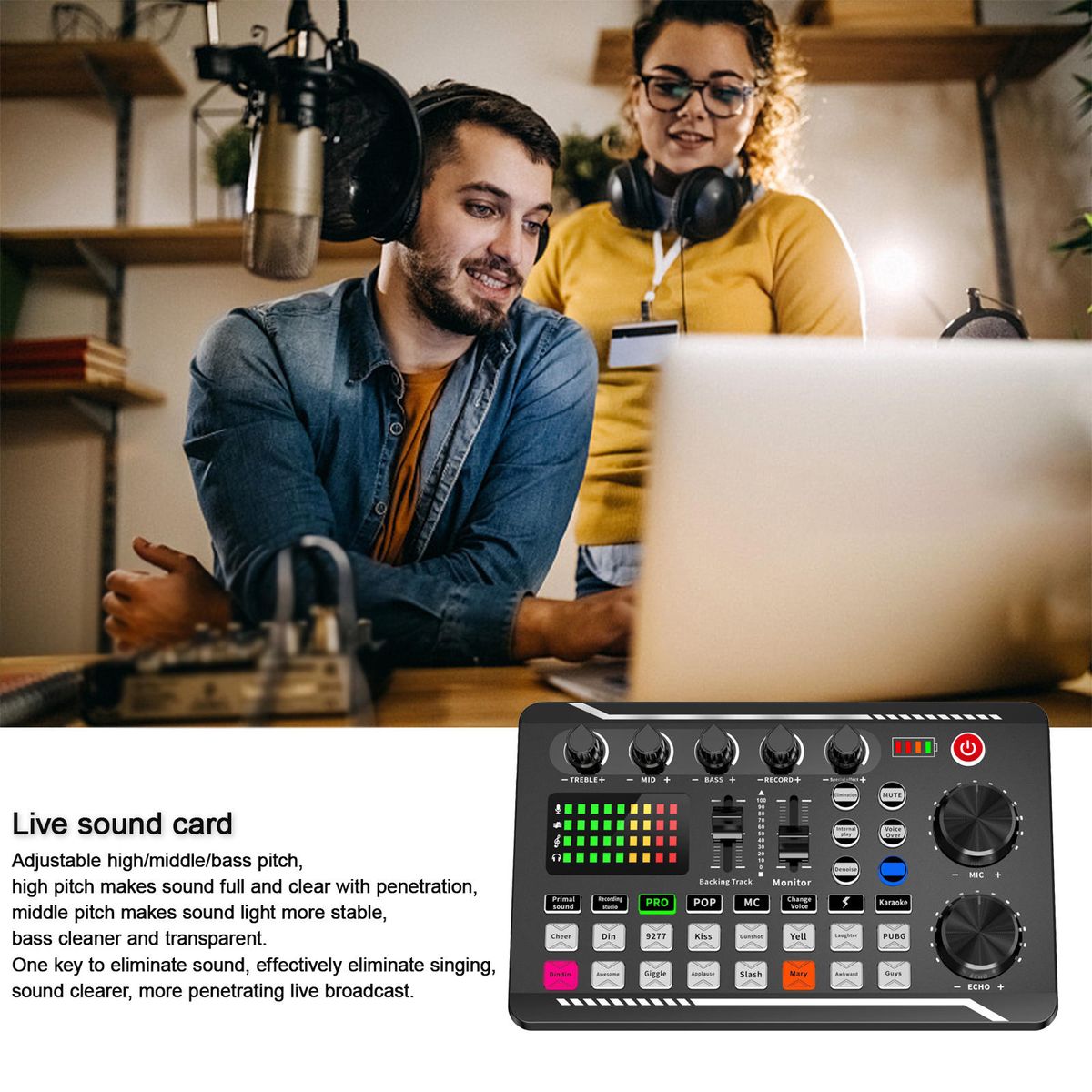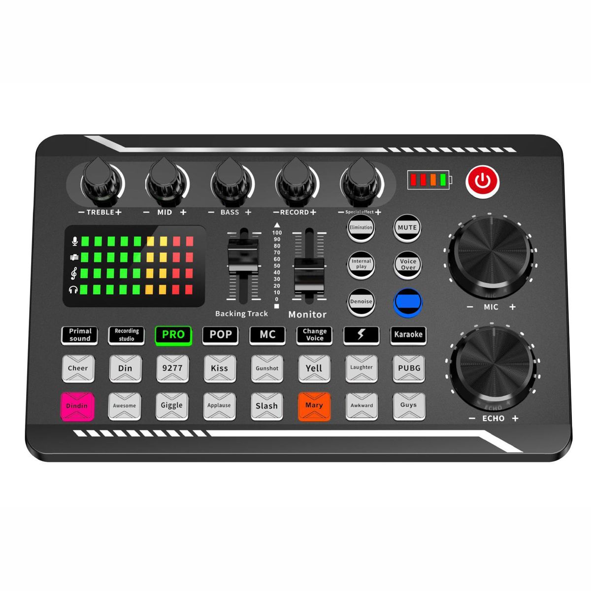 Multifunctional tuning sound card, complete functions, simple operation, easy to use, built-in lithium battery. Universal for mobile phones and computers.