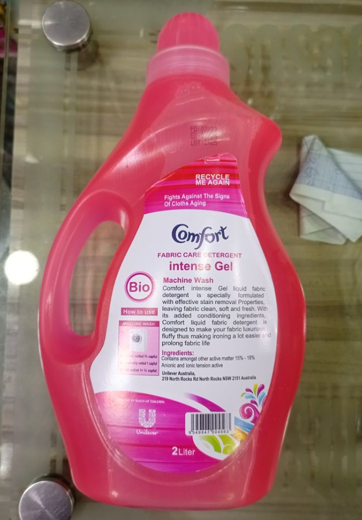 Comfort Fabric Care Detergent Intense Gel Machine wash fights against the signs if cloths aging.Comfort intense gel liquid fabric detergent is specially formulated with effective stain removal properties, leaving fabric clean, soft and fresh. With it's added conditioning ingredients. Comfort liquid fabric detergent is designed to make your fabric luxurious fluffy thus making your ironing a lot easier and prolong fabric life.