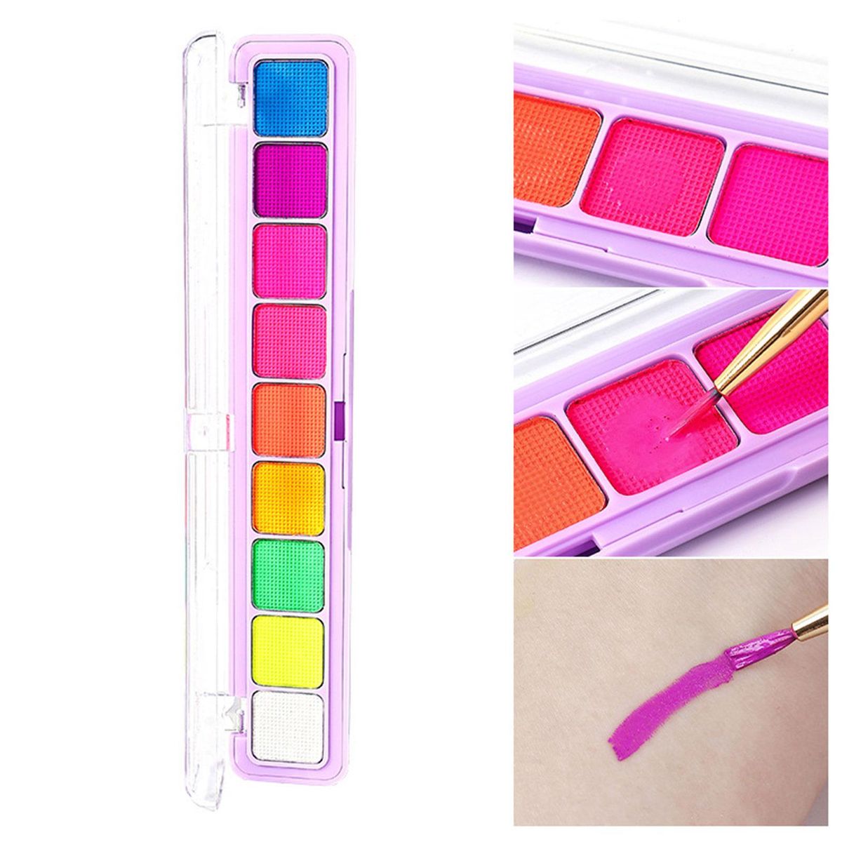 face paint palette;Water Activated Face Body Paint Luminous Stage;Neon Face Paint Water Based Paints Halloween;Body Painting Palette Fluorescent Kids Adults;Eyeliner Eyeshadow Face Painting Palette Theater;Face Painting Glow In The Dark Cosplay