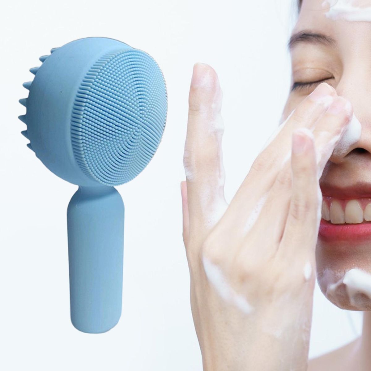 With double sided design and soft silicone bristles, this face brush can allow you to use one side to cleanse your face to remove dirt and purify pores, use the other side to wash hairs and gently and comfortably massage your scalp.