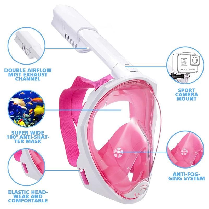 Detailed Information About The Product:[180° PANORAMIC VIEWING]high- definition premium lense and gives you superior views over a standard diving Snorkeling Package Set A new full face design lets you see absolutely everything around you when diving. Our snorkeling gear provides the fullest visibility for an impressive diving experience.The Snorkel Mask Full Face has Camera stand, You can share the beauty and record the fun times underwater.