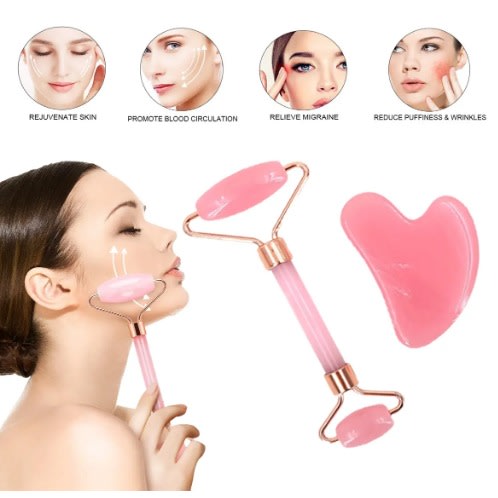 Buy Facial Roller And Massager - Jade Roller And Gua Sha Set - Pink in Nigeria