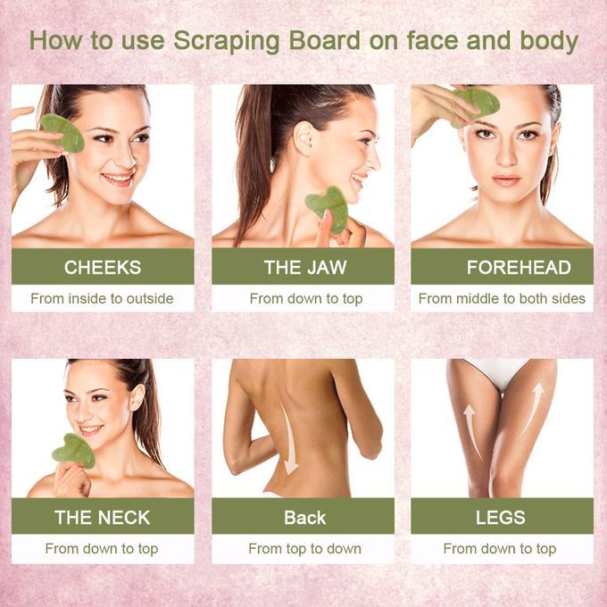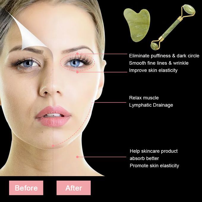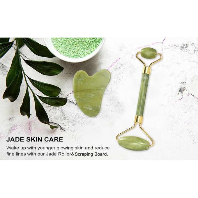 Set of 2pcs Natural Jade massager, 1 Piece Double Head Roller and 1 Piece Scraping Board.
