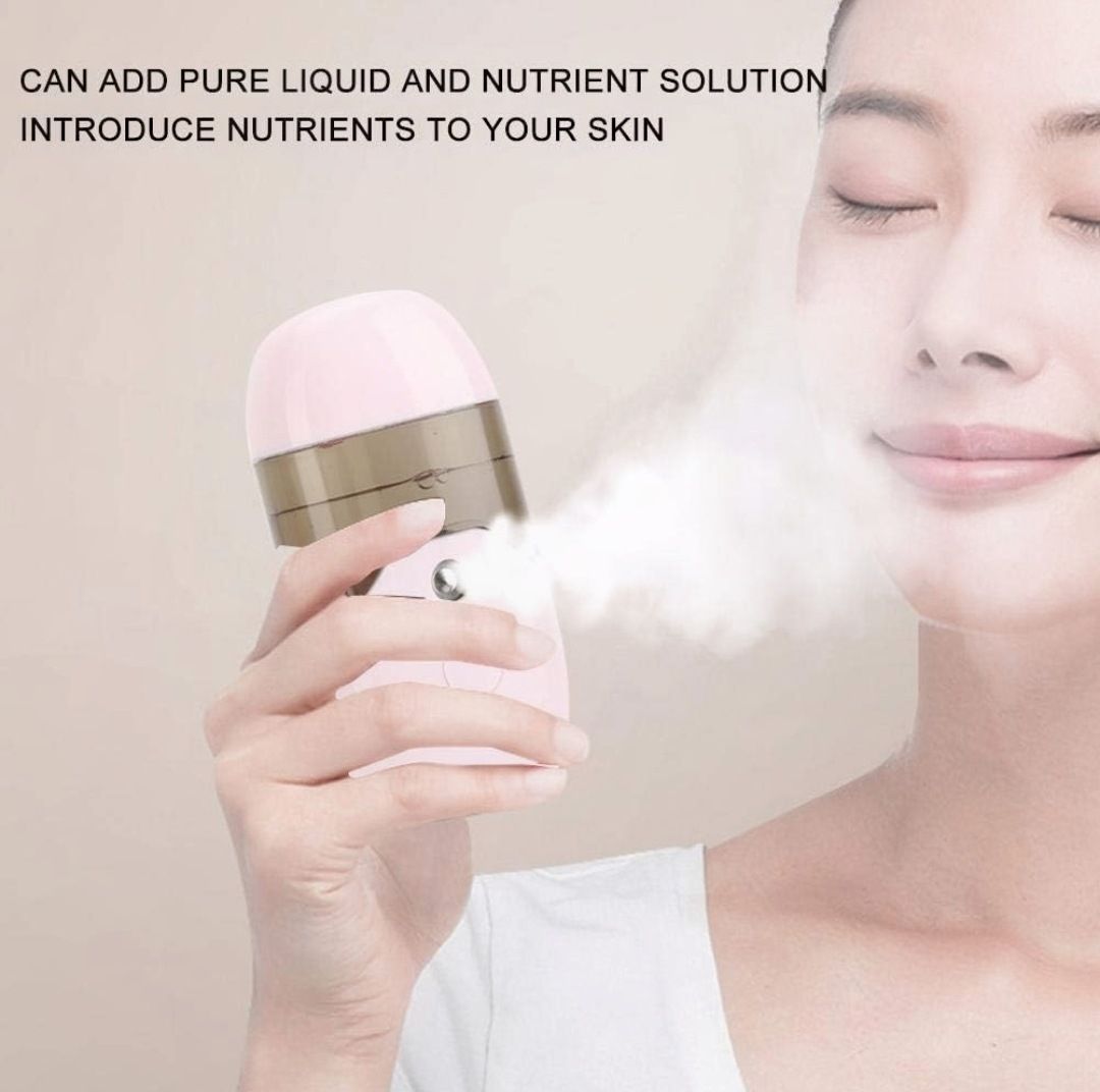 Features & detailsDEEP MOISTURIZING : Atomization allows moisture to penetrate deep skin for cleansing. It can restore deep moisturization of the skin, restore elasticity, reduce pores, regenerate, improve skin, improve dark circles and restore youthful vitality.POCKET SIZE : USB Charging, Simple to use, Pocket size. Just filled it up with water, push down the switch, and then it automatically sends out a nice mist. The handy steamer is mini size, you can put it in your handbag, purse, schoolbag and even pockets and use it anytime though for a quick little hydration boost of your skin.LONG LASTING AND SOOTHING SPRAY : Nano technology, the mist is tiny and soothing, don't mess up your makeup, keeps your skin from getting oily or dry. Turn on the fan, the face steamer sprayer makes you feel relaxing and cool on a hot day, and helps the skin stay hydrated during the summer season.APPLICATION ALL PARTS OF BODY : All-around water replenishment, used on face, hands, body, hair etc, reduce fine wrinkles and skin sensitivity. 40ml large water-tank capacity, you can use it the whole day without adding water again.NICE GIFT : The perfect combination: there are two colors of white and pink, cute and vivid colors will bring a pleasant experience, they are very cute and can be used as gifts for your girlfriend, family and sisters.