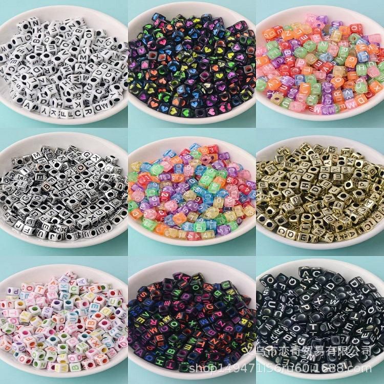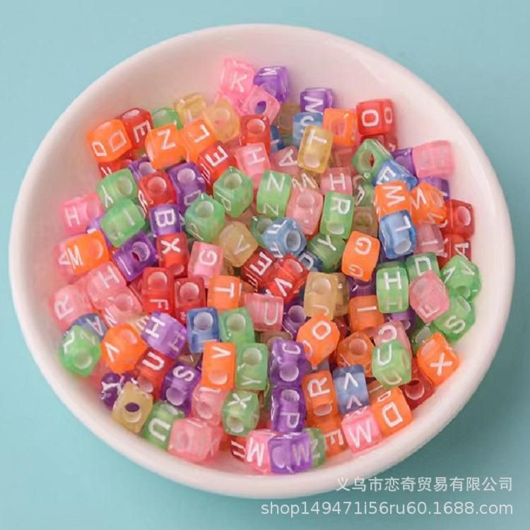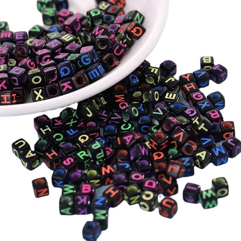 Buy Factory direct sale acrylic colorful square letter beads white letter English letter beads diy beading accessories Fluorescent letters on black background 100pcs/pack (mixed style) in Nigeria