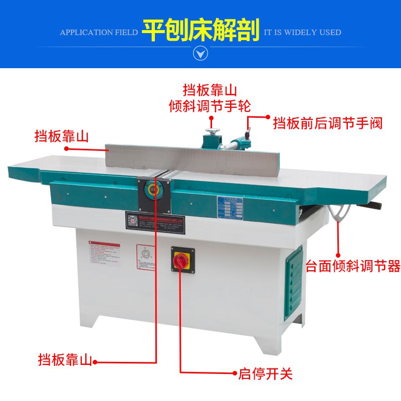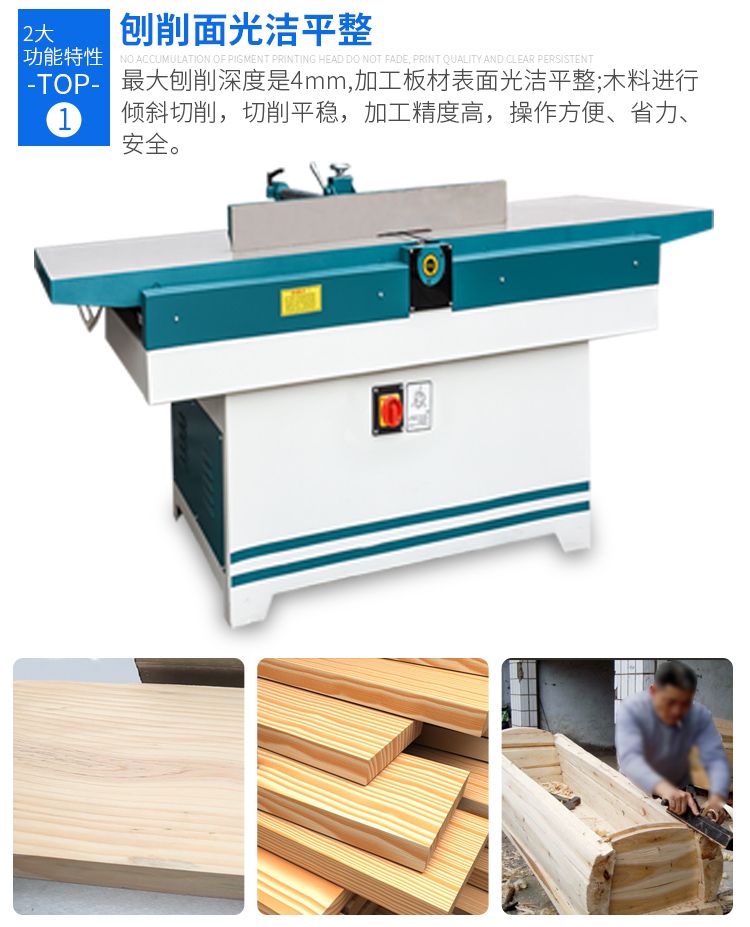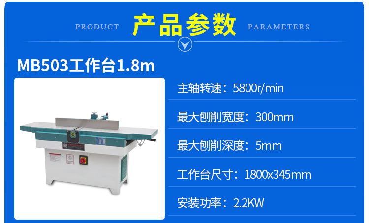 MB504 series woodworking beveled flat creation is widely used in the industries of plate, furniture, construction, vehicle, shipbuilding, decoration, etc.This series of machine tools has high precision, low noise, energy saving, high efficiency, simple adjustment and long service life. The structure is safe and reliable, the use and maintenance are convenient, the price is reasonable, the operation is stable, beautiful and generous. The thickness of the plate can be processed, and it can be continuously operated.