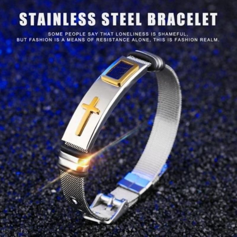 Buy Factory direct supply stainless steel bracelet gold cross men's bracelet jewelry new titanium steel bracelet PT732 Silver in Nigeria