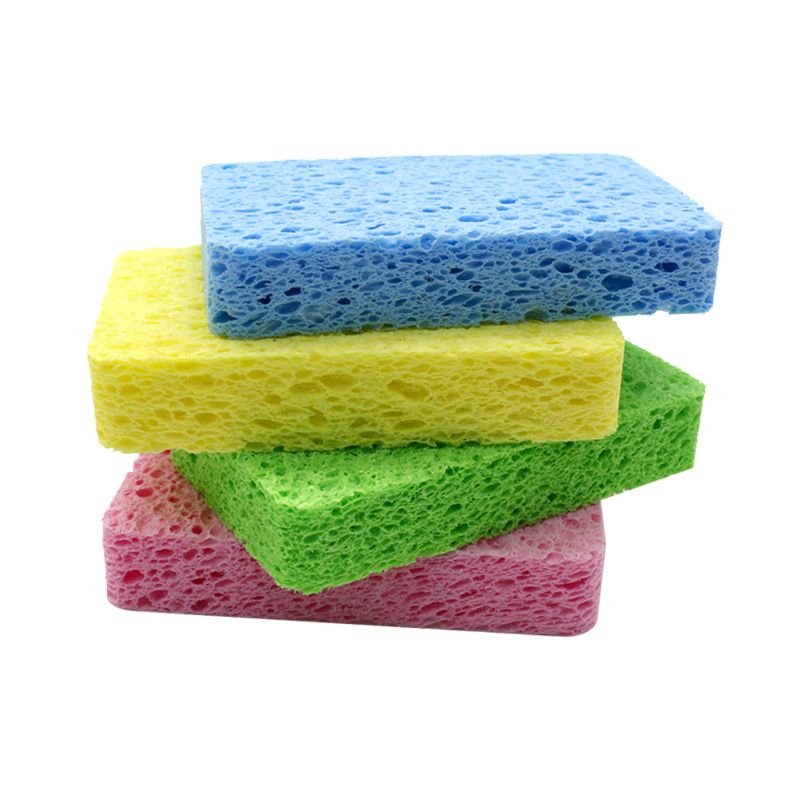 Factory environmental protection wood pulp cotton scouring sponge kitchen sponge scouring pad degreasing and decontamination dishwashing sponge Pink