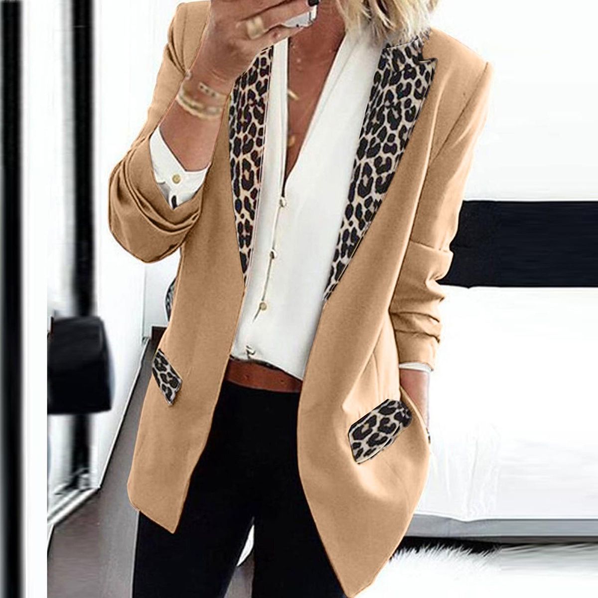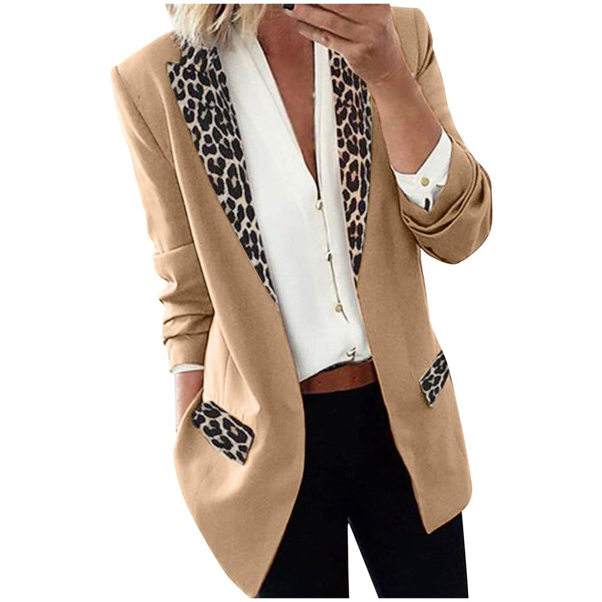 Fahion Women's Lapel Cape Leopard Notch Laple-Blazer Casual Office Suit Outwear
