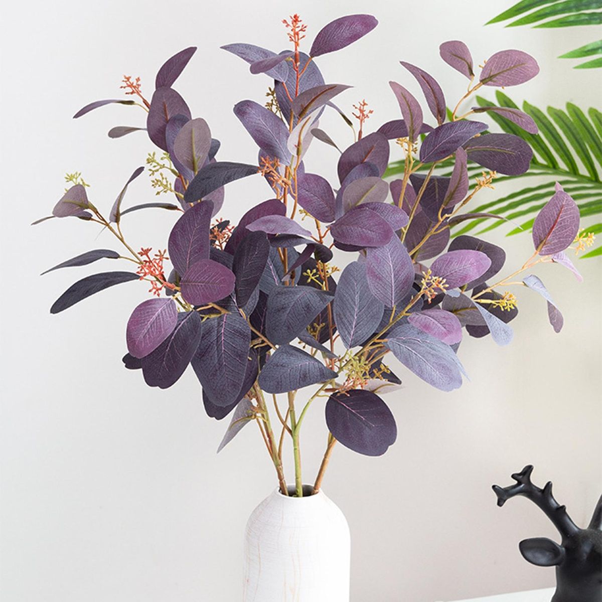 Simulated Eucalyptus leaves have clear veins for a realistic appearance; and its branches are lined with wire that can be freely bent to meet your decorative needs.