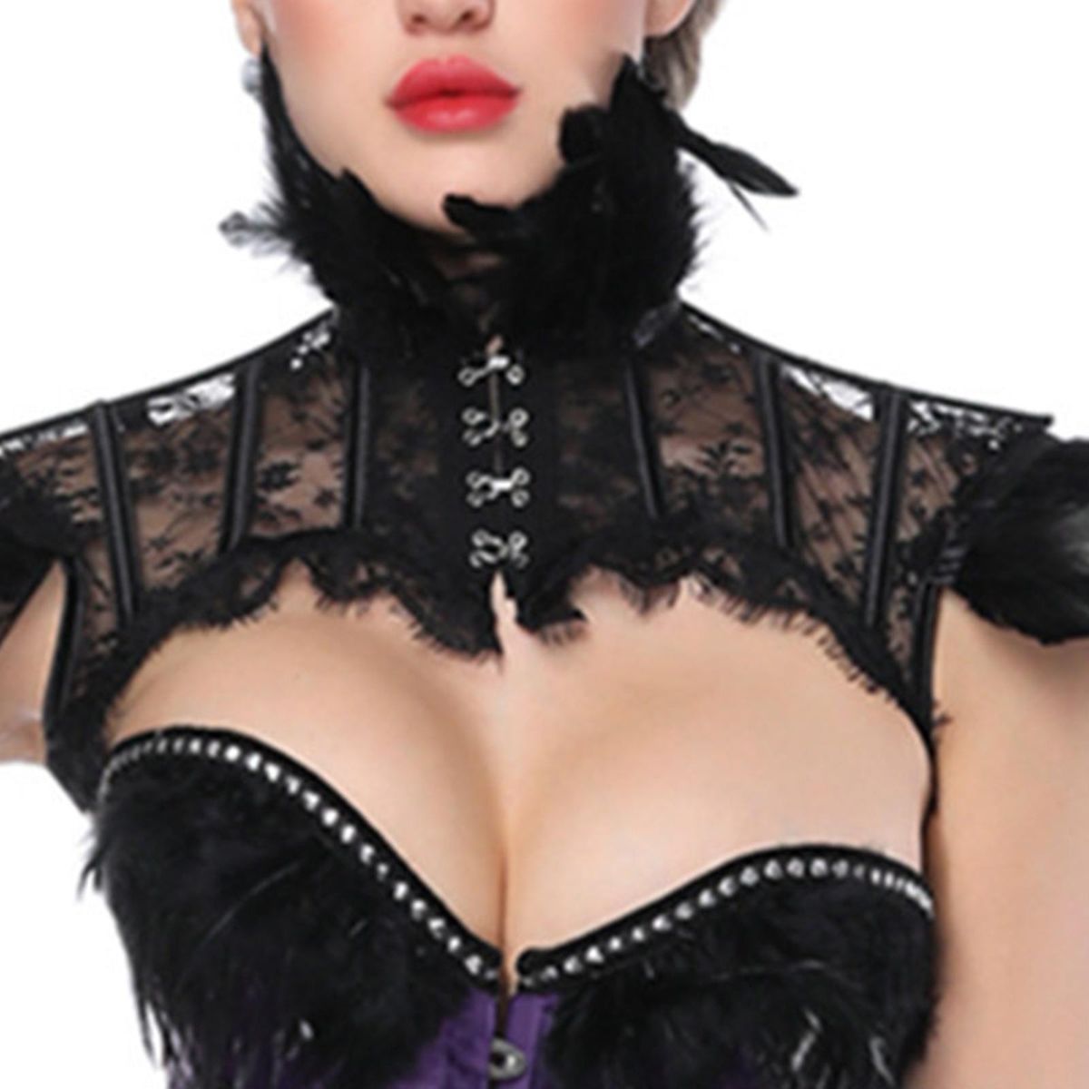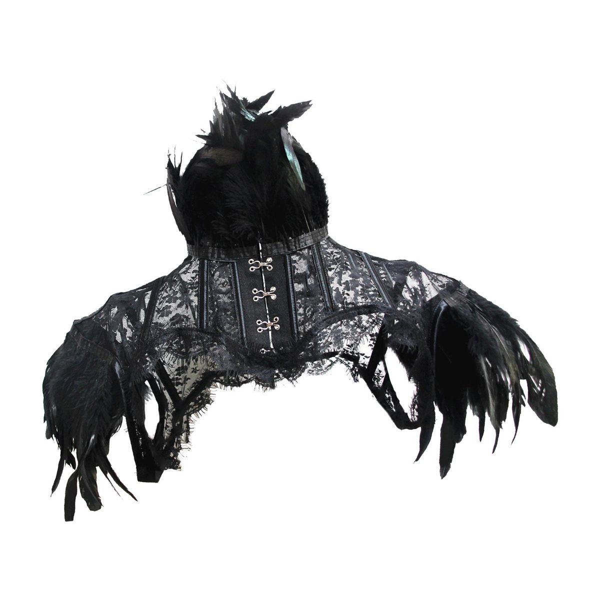 Women's gothic natural feather shrug shawl shoulder wrap cape with collar for Halloween costume party.