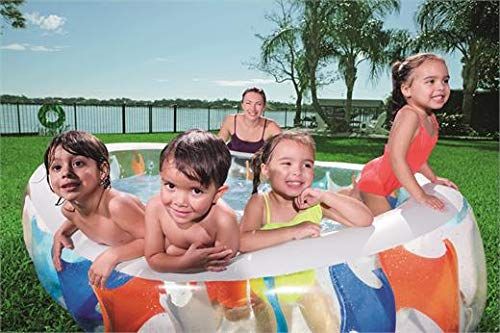 Every little swimmer will have a ton of fun in the Bestway 2.13 x 2.06 x 69 cm colored inflatable pool on a hot day.