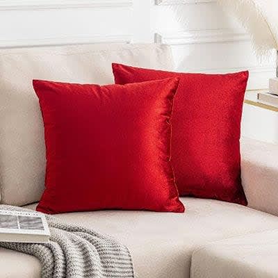 Velvet Fiber Stuffed Throw Pillows - 2 Pieces - Red