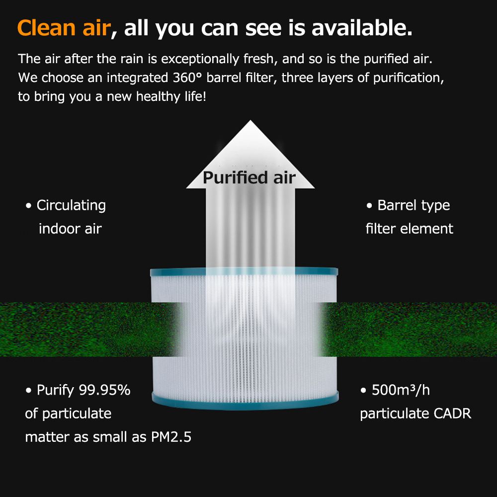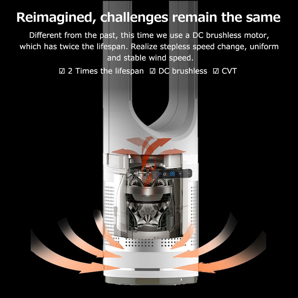 1. This bladeless electric fan has the function of year-round purification. Equipped with fiber filter, it can purify harmful gases and 99.95% particles as small as PM2.5.