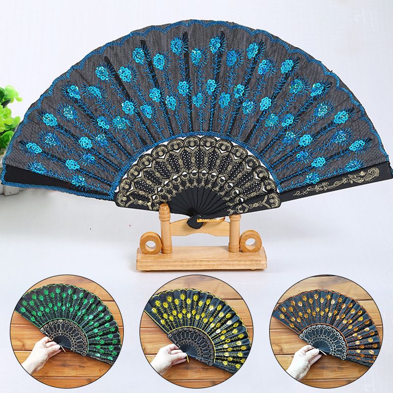Buy Fan Carved Folding Decor Sequins Plastic Tail Accessory Art Fan Feather Home Crafts Print Summer Bone Embroidery Hand in Nigeria