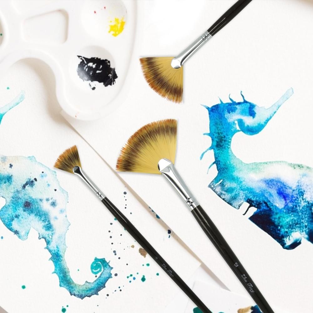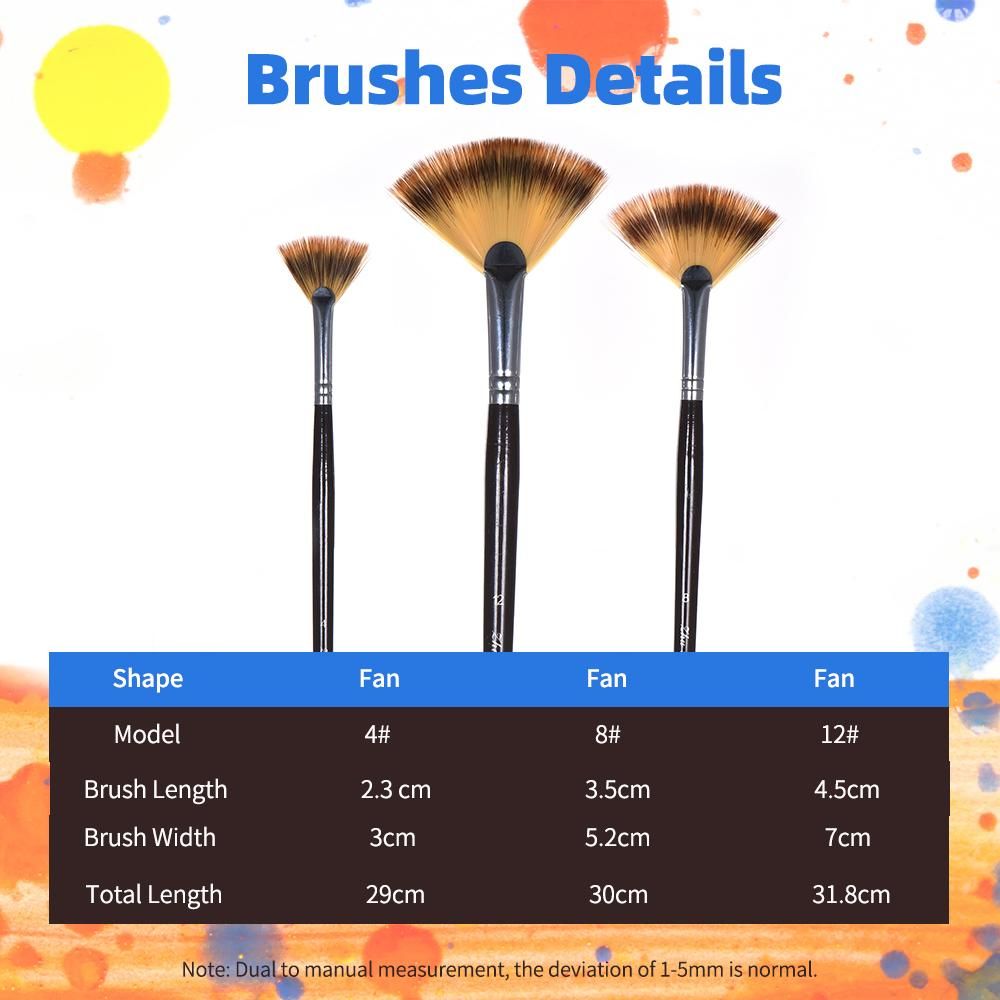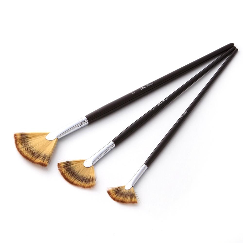 Buy Fan Paint Brushes Set 3pcs Anti-Shedding 3-Color Soft Fan Brush Nylon Hair Long Wood Handle Artist Paintbrush for Acrylic Oil Watercolor Gouache Painting in Nigeria