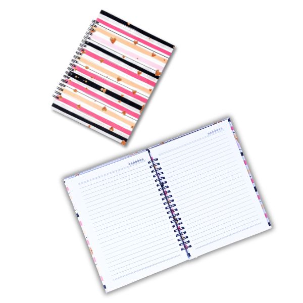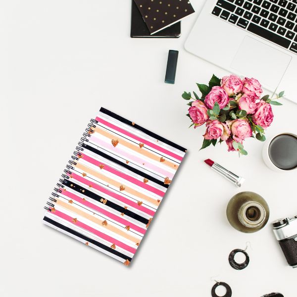 4. **Durability**: The Pink and Gold Hearts Notebook is built to last. Its sturdy binding ensures the pages stay securely in place, and the durable cover protects your notes from wear and tear.