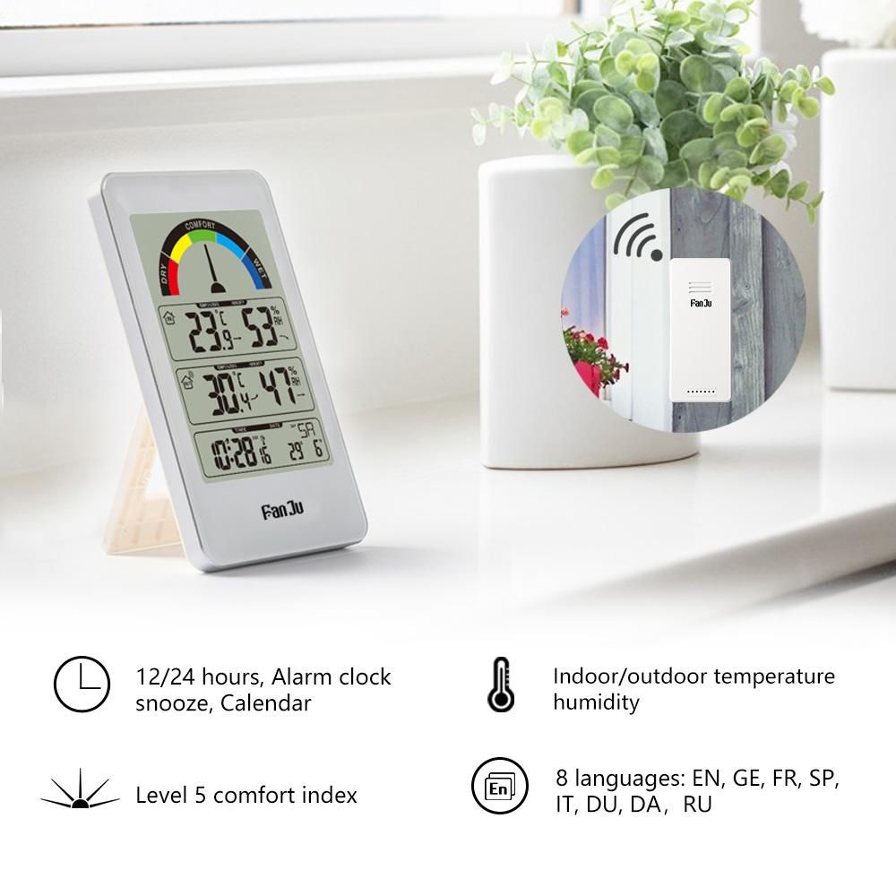 Buy FanJu FJ3356 Digital Hygrothermograph Temperature Humidity Meter Pointer Wireless In/Outdoor Thermometer with Senser Electronic Digital Alarm Clock Function Comfort Indication in Nigeria