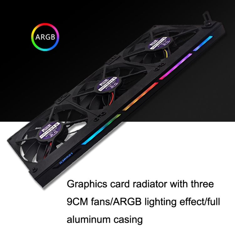 1. Graphics card radiator with three 9cm fans/ARGB lighting effect/full aluminum casing