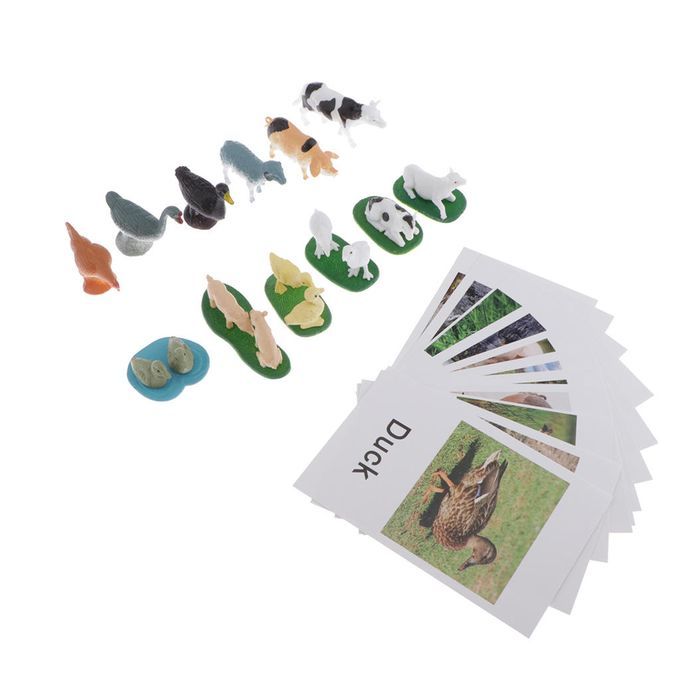 Education Animals Toy;Animal Model Card;Farm Animals Model Card;Miniature Figurine;Matching Cards;Kids Learning Toy;Naming Card Matching Material;Homeschool Group of Farm Animals Science