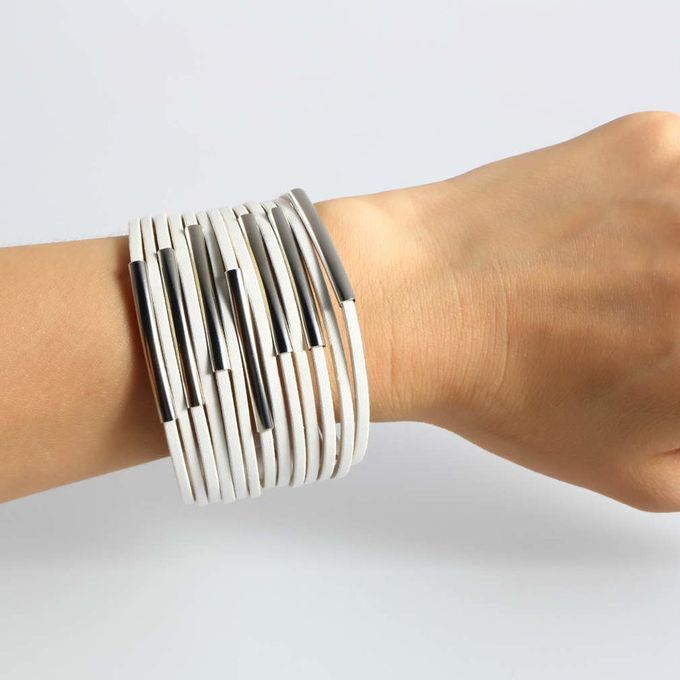 1*Fashion 13 Multi-layer PU Leather Uff Bra Elet-white