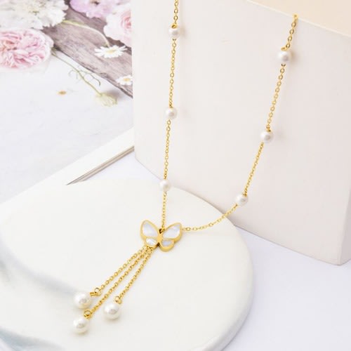 Buy Fashion Bead And Butterfly Pendant Necklace- Gold in Nigeria