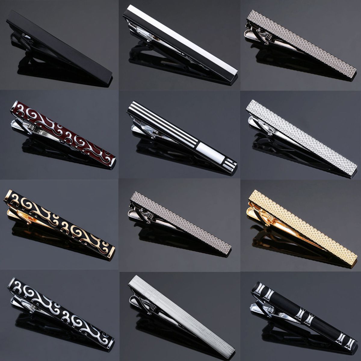 Color: 1# Black stripe, 2# Black glossy tie clip, 3# Black silver stripe, 4# Silver stripe, 5# Red pattern, 6# Gold pattern tie clip, 7# Silver black tie clip, 8# Silver flower tie clip, 9# Black flower tie clip, 10# Gold flower tie clip, 11# Gun black pattern tie clip, 12# Gold rose tie clip, 13# Blue clover, 14# Silver white tie clip, 15# Black laser line (optional)