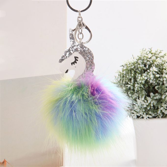 Fashion Colorful Fur Ball Fox Key-chain Bag Plush Car Door