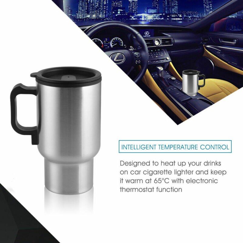 Features: * Ergonomically designed, fit most vehicle cup holders. * 12V car mug does not re-heat cold drinks. * Heat function and practical, maintains a temperature of 70C. * Safety lid, the water will not overflow no matter drinking or placing. * Slippery resistant base, it will not slide easily when used in the car . Specifications: Material: Stainle Steel Color: Silver Capacity: Approx.450 ml Height: 16cm Rim of diameter:8.5cm Cup bottom diameter:6.5cm It Maintains a Temperature Only, Can Not Boil Water. Package Includes: 1 x Car heated cup 1 x cable Note: * Please allow 1-2cm mistake due to manual measurement. * Due to the difference between different monitors, the picture may not reflect the actual color of the item.